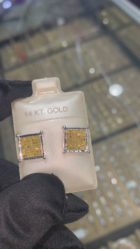 14KT White Gold Natural Yellow Diamond Square Studs 1.05ctw