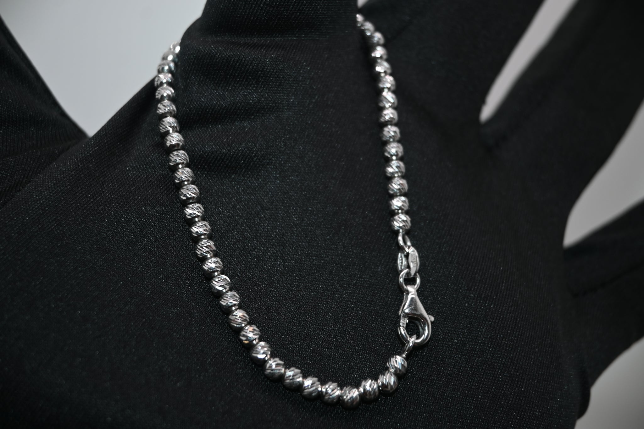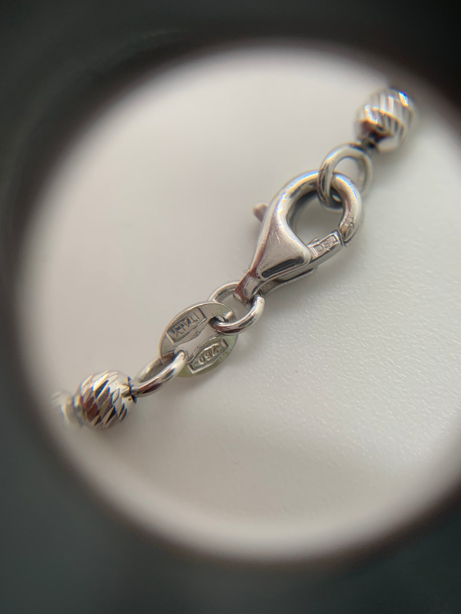 Made with a very gorgeous diamond cut finish & very pristine polishing. The high karat gold almost complements the rhodium itself. Giving this beautiful bracelet a dark true white gold tone.