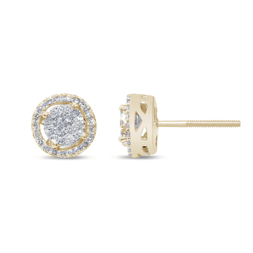 14KT Halo Flower Push Back Earrings #3, 0.25ctw